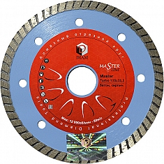 Алмазный отрезной круг Diam Master Line Turbo Master 125 мм (Диам Мастер Лайн Турбо Мастер 125 мм) – профессиональный алмазный диск для сухой резки бетона, слабоармированного бетона, огнеупоров, кирпича, тротуарной плитки, общестроительных материалов.