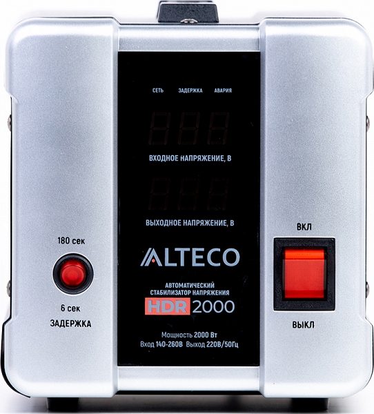 Автоматический cтабилизатор напряжения Alteco HDR 2000 (Альтеко ХДР 2000) предназначен для обеспечения стабильным напряжением подключенных к нему устройств. Широко используется в бытовых и промышленных сферах для защиты техники от аварийных скачков электроэнергии.