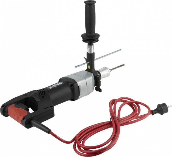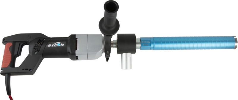 Бесщеточная дрель для сухого алмазного сверления с микроударом Bycon DB-132 (Байкон ДБ-132) – алмазная дрель с микроударом для сухого алмазного бурения отверстий Ø до 102 мм в бетоне, железобетоне, "легком" бетоне, шлакобетоне, кирпиче и других особенно твердых материалах при высокой рабочей скорости; как с использованием станины, так и "с рук"; для профессионального использования. Отличный вариант как для монтажников кондиционеров, так и для электриков. С дополнительными переходниками позволяет работать как алмазными коронками стандартной длины, так и коронками для подрозетников.