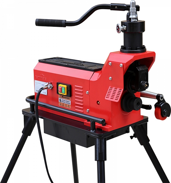- Желобки на трубах, необходимые для грувлочных соединений, образуются путем обработки (сдавливания) края металла с помощью ручной гидравлической подачи накаточного ролика на трубу